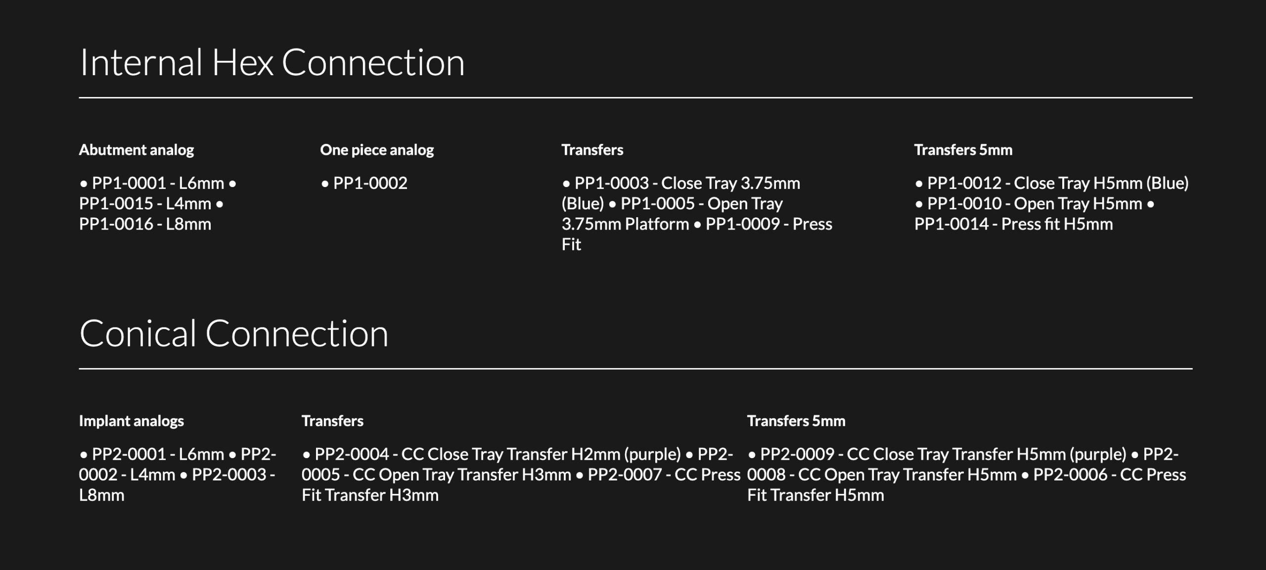 Made from stainless steel, our transfers and impression capping provide clinicians with quality products that are simple, yet accurate to use. Our analog implant can be also used as an analog abutment with 3 different heights, expanding the possibilities clinicians have in their hands, when using this product. Our impression capping is based on a dual stability protocol, creating a solution for open & close tray procedures, with two heights of gingiva: 3 and 5 mm. In addition, we provide a clever “Press Fit” impression, which is a combination of the two systems (open/close tray) maximising the precision of open tray with the ease of close tray in every procedure.